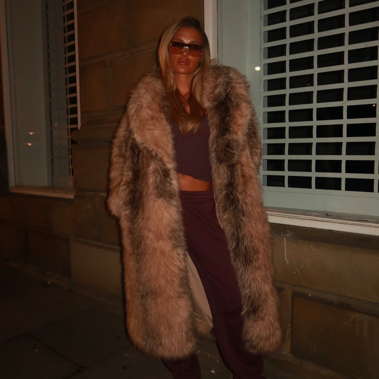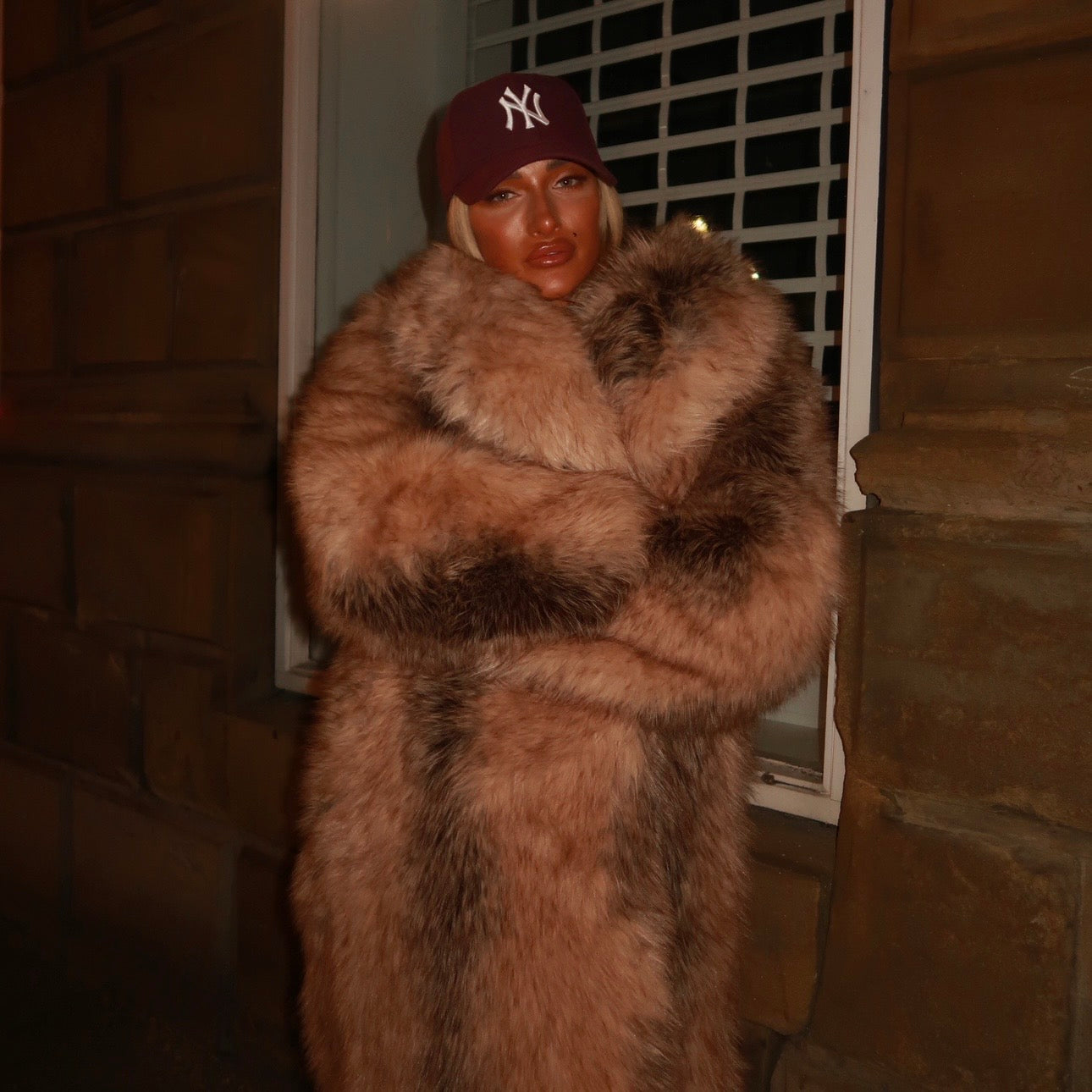 Cream, Brown, Black faux fur long coat